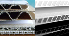 Ideal for a range of packaging and point of sale applications, corrugated (e flute and b flute) and Correx are lightweight, resilient and adaptable. Correx, made of fluted polypropylene is available in a range of colours, waterproof and recyclable. 3mm E flute is strong and easily constructed into boxes whilst the narrower B flute is perfect for more delicate constructions.